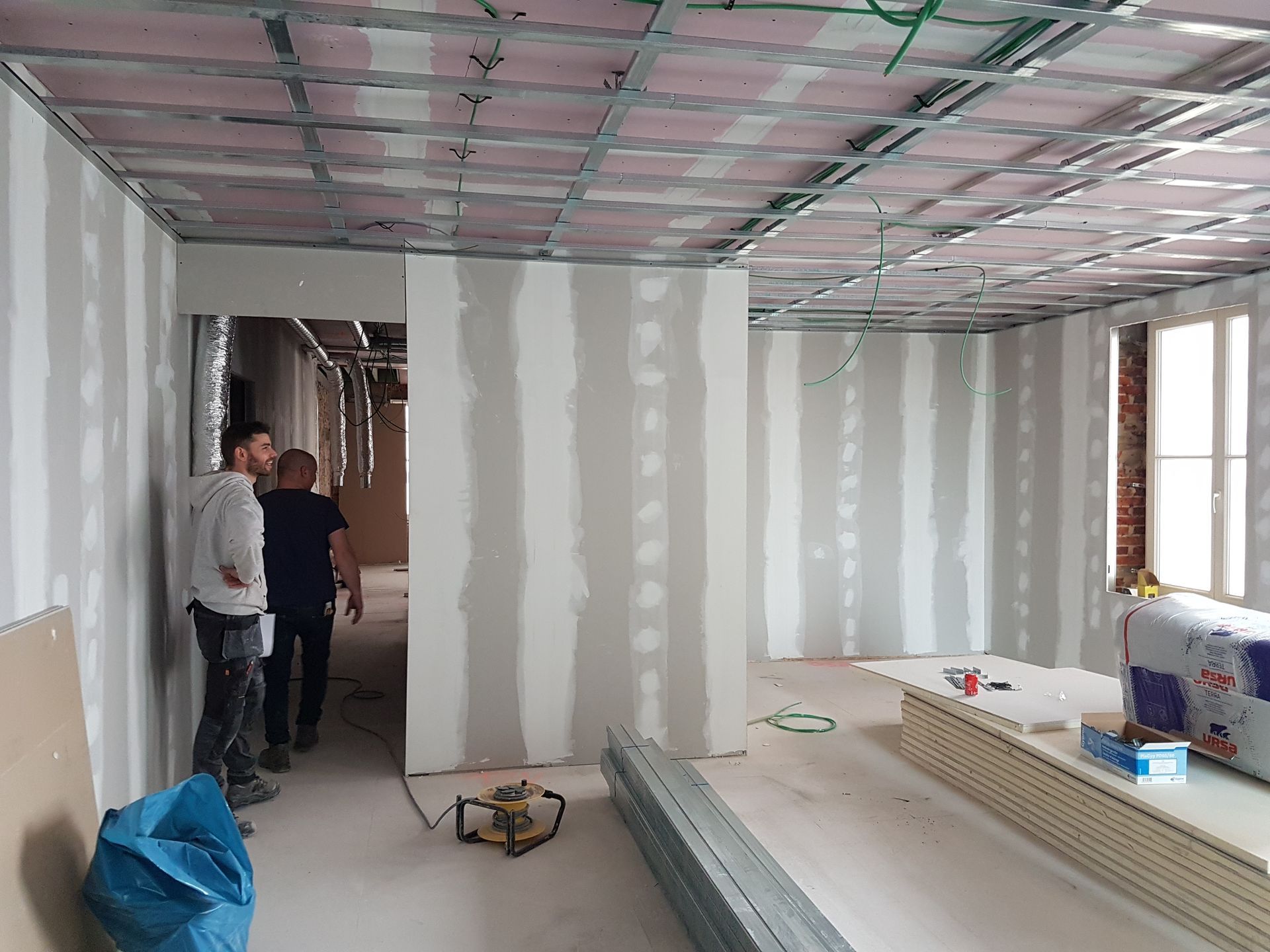 Gipskartonwerken, SYSTEEMPLAFONDS EN DROOGBOUWVLOEREN in snel tempo.